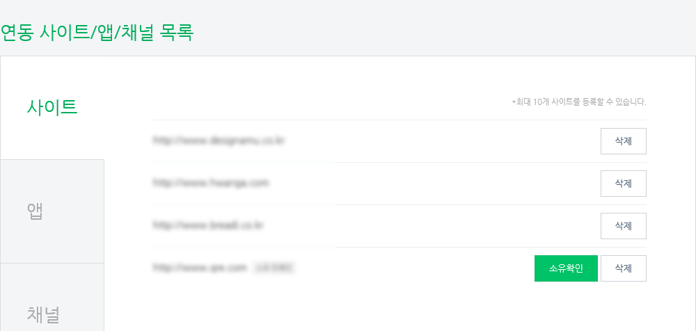 사이트 추가 버튼을 클릭 하여 사이트 등록을 진행합니다.